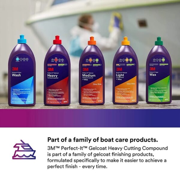 3M Marine hrubá brusná pasta Gelcoat Heavy Cutting Compound (946 ml) je profesionální přípravek pro rychlou a efektivní obnovu gelcoatových povrchů. Odstraňuje silnou oxidaci, škrábance (již od zrnitosti P600) a jiné povrchové vady, zanechávajíc vysoce lesklý finiš.