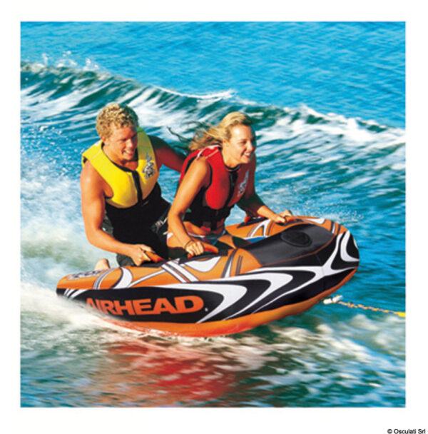 Připravte se na adrenalinovou jízdu s vodní atrakcí Airhead SLASH II! Tento nafukovací prostředek je navržen pro dvě osoby a přináší mimořádnou zábavu na vodní hladině. Jeho jedinečný tvar a vysoká pevnost ho předurčují k dynamickému carvingu, nabízejíc mnohem lepší manévrovatelnost než tradiční kruhové modely. Zažijte vzrušující otočky a neopakovatelné momenty s přítelem nebo rodinou.