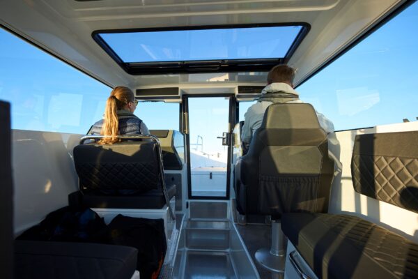 Přístup na palubu je bezproblémový díky prostorným vstupům a pevným zábradlím. Podlahy jsou pokryty protiskluzovými hliníkovými plechy. Světlá kabina se šesti sedadly a skládacími lavicemi v kokpitu poskytuje flexibilní prostor. Součástí standardní výbavy je moderní 16palcový inteligentní displej Buster Q.