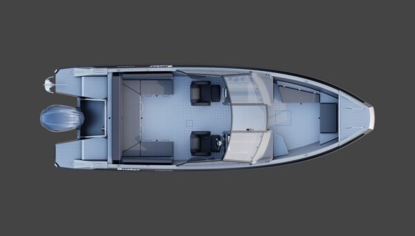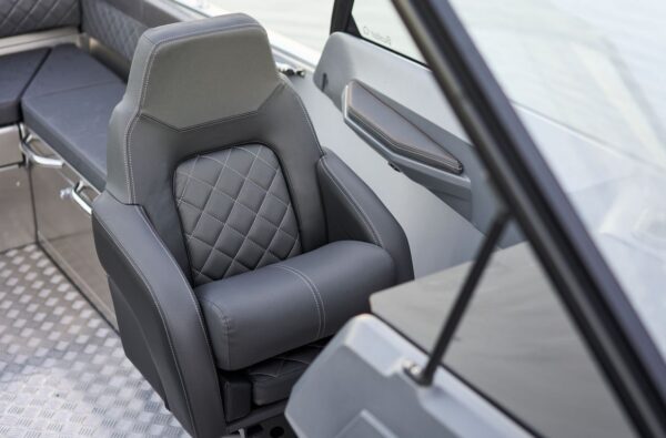 Nový Buster SuperMagnum posouvá zážitek z plavby na novou úroveň. Spojuje výkon, bezpečnost a prostorný interiér s moderním, ostrým designem inspirovaným vlajkovou lodí Buster Phantom. Tmavě šedé konzoly a hliníková podlaha odrážejí naše dědictví odolných lodí se snadnou údržbou. Výrazně větší trup zlepšuje plavební vlastnosti a poskytuje dostatek místa pro celou posádku.