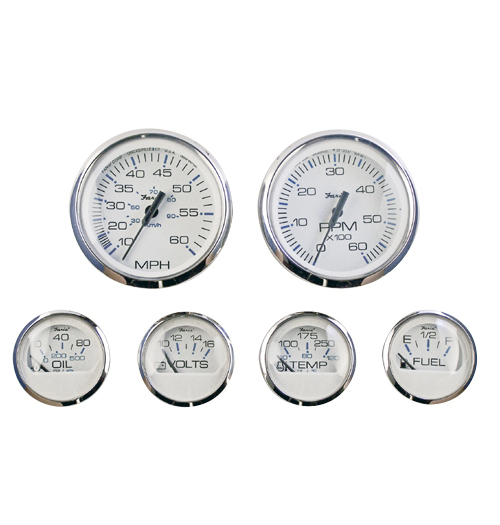 Sada palubních přístrojů FARIA „Chesapeake SS White“ je určena pro benzinové lodní motory. Nabízí precizní sledování s elegantním stylem. Souprava obsahuje šest klíčových přístrojů:
