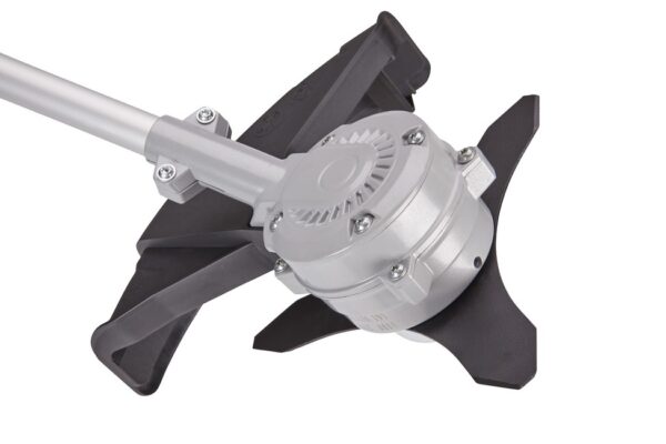 - Žací hlava: V základním vybavení naleznete poloautomatickou žací strunovou hlavu typu Tap&Go (max. průměr struny 2,4 mm, kapacita 6 m) a robustní 3-zubý žací kotouč o průměru 255 mm v základním vybavení .