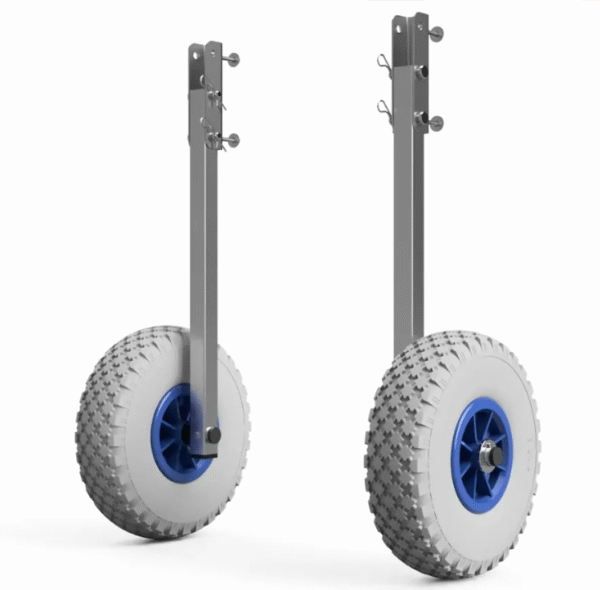 Přepravní kolečka SUPROD ET260 v elegantním šedo-modrém provedení představují ideální řešení pro každého majitele lodi, který hledá maximální nezávislost a komfort při manipulaci s plavidlem. Díky těmto robustním kolečkům již nebudete potřebovat pomoc při přesouvání člunu do vody ani z vody. Oproti menšímu modelu ET200 se ET260 vyznačuje většími kolečky, která výrazně usnadňují překonávání překážek a zaručují vynikající stabilitu na různých typech povrchů, ať už je to štěrk, písek nebo tráva.