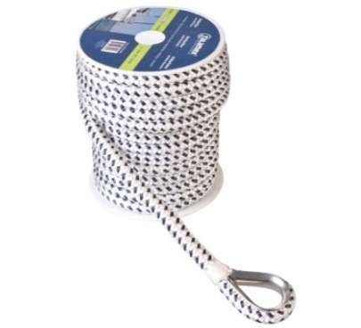 Ukotvovací lano s okem 12 mm x 20 m v bílo-černém provedení je nezbytnou součástí výbavy každé lodi pro bezpečné kotvení.