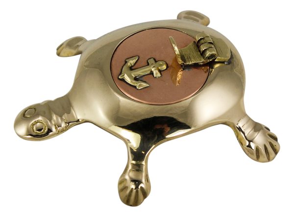 Originální mosazný popelník ve tvaru želvy je stylovým a zároveň praktickým doplňkem pro milovníky námořního designu. Díky detailnímu zpracování a kombinaci mosazi a mědi působí elegantně a luxusně, ať už jej umístíte na loď, terasu nebo do interiéru.