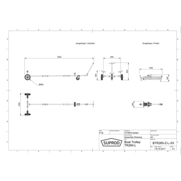 - 1 x Přepravní vozík SUPROD TR260-L-LU (demontovaný), 1 x Montážní návod