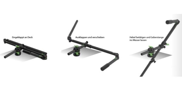 Robustní základna HEXX zajišťuje stabilitu až do 8 km/h. Skládací konstrukce umožňuje snadnou přepravu v přiloženém kufříku, tyč se složí na polovinu. Kabely sonaru jsou úhledně vedeny vnitřními sloty. Je plně nastavitelná pro instalaci uvnitř i vně člunu a kompatibilní se všemi hlavními výrobci (včetně Humminbird MEGA Live). Odnímání je rychlé a bez nářadí.