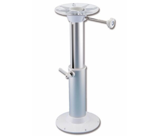 Teleskopický podstavec pod sedátko v elegantní bílé barvě je navržen pro maximální flexibilitu a stabilitu ve vaší lodi, karavanu nebo jakémkoli prostoru, kde potřebujete přizpůsobitelnou výšku sezení. Tento podstavec je vyroben z vysoce kvalitního lehkého kovu, což zaručuje jeho robustnost a odolnost vůči korozi, zatímco si zachovává nízkou hmotnost pro snadnou manipulaci.