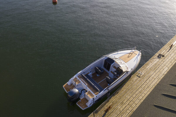 Design Yamarinu 60 DC klade důraz na bezpečnost, funkčnost a prostor. Nabízí komfortní společenské posezení s otočnými sedadly a optimalizovanou zadní pohovkou. Elegantní teaková paluba na přídi a na koupacích plošinách zvyšuje komfort a bezpečnost. Kajuta s bočními okny slouží jako prostor na spaní pro dva a zároveň jako suchý úložný prostor. Širší tvar trupu zajišťuje prostornost, stabilitu a dobře vyvážený zážitek z plavby. Připravte se na dokonalé letní dny na vodě!