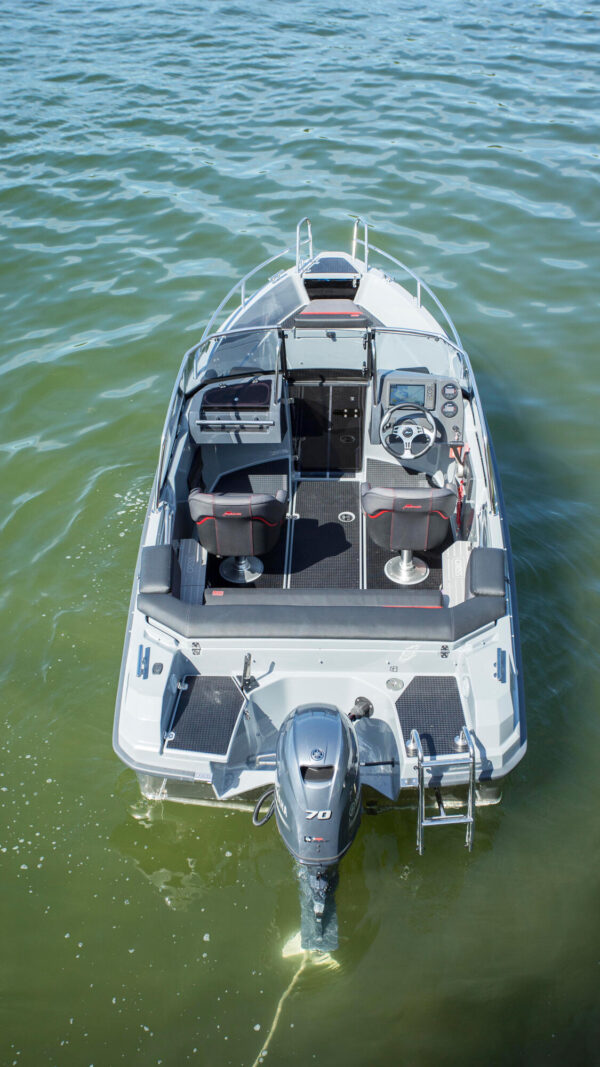 Yamarin Cross 54 BR 2024 je hliníkový motorový člun ideální pro rodinná vodní dobrodružství. Jeho pevný a štíhlý trup zaručuje bezkonkurenční ovládání a stabilní jízdu pro celou rodinu . Člun s kapacitou šesti osob a dostatkem úložného prostoru je praktický a bezpečný díky vysokým zábradlím a nášlapům. Robustnost je potvrzena testy s motory Yamaha do 70 koní. Pro bezstarostnou plavbu je standardně vybaven Cross Q infotainment systémem. Na 10palcové obrazovce Cross Q naleznete navigaci, mapy, předpověď počasí a uživatelskou příručku pro snadnou orientaci a plný požitek z plavby.