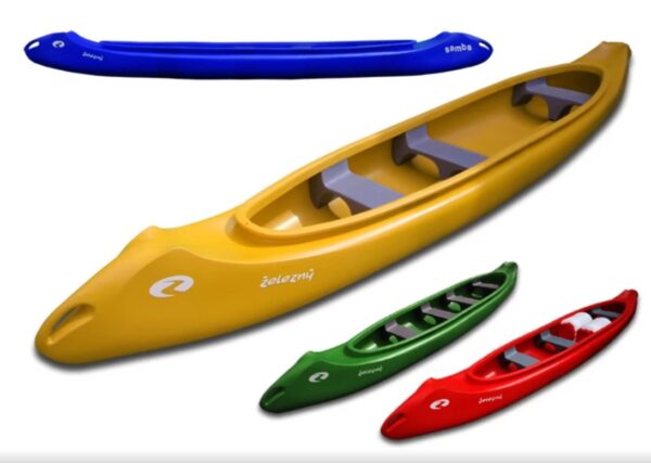 Představujeme ŽELEZNÝ SAMBA 4.5 – špičkové plastové kánoe nové generace. Toto klasické, ale moderní kánoe je extrémně stabilní, obratné, rychlé, pohodlné, nerozbitné a nepotopitelné. Je ideální pro široké spektrum vodních aktivit: od klidných plaveb po jezerech, přes turistiku po řekách, až po sjezd lehčích peřejí (WW). Díky své ovladatelnosti je vhodné pro 2-3 vodáky i na technicky náročnější toky. Můžete jej osadit vesly nebo motorem.